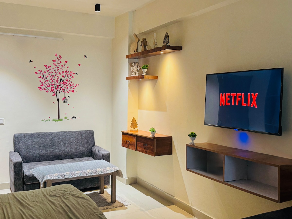 こちらのユニークな宿泊先には、独自のスタイルがあります。 スイートの美しい建築とデザインは、あなたにふさわしい豪華さを提供します。 PVRシネマや他の多くのレストランがあるVvipスタイルモールから徒歩圏内にあります。 ここではSwiggy、Blinkit、Zepto、Zomatoが利用できます。 Netflixを見てくつろぐための50インチテレビ。 キッチンには電磁調理器と電気ケトルがあります。 バルコニーからの美しい景色。