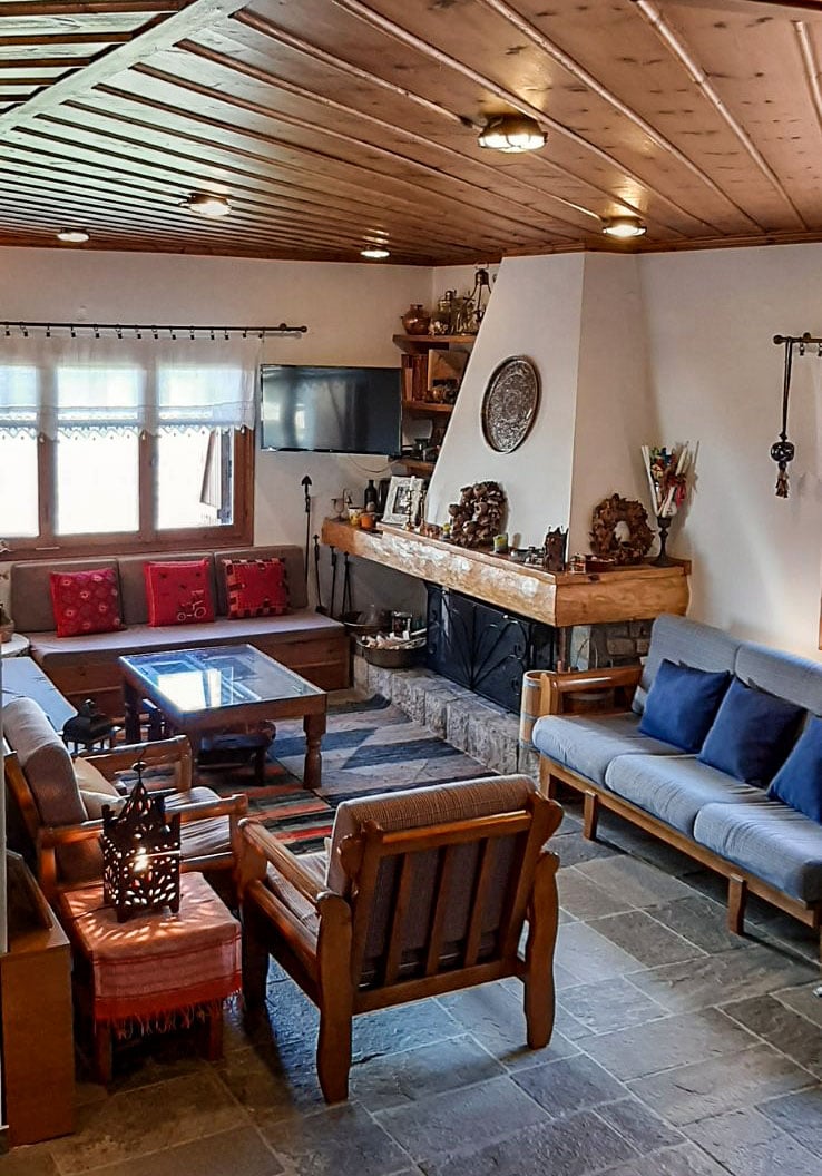 At The Forest Chalet, spring in Parnassus reveals a unique charm. Nestled in a peaceful fir forest, the chalet is surrounded by fresh mountain air and nature coming back to life. Enjoy relaxing evenings by the fireplace, movie nights in the private home cinema overlooking the forest, and peaceful walks among the fir trees. On beautiful days, savor a meal outdoors under the trees. Ideal for couples, families, and friends seeking an authentic mountain escape.