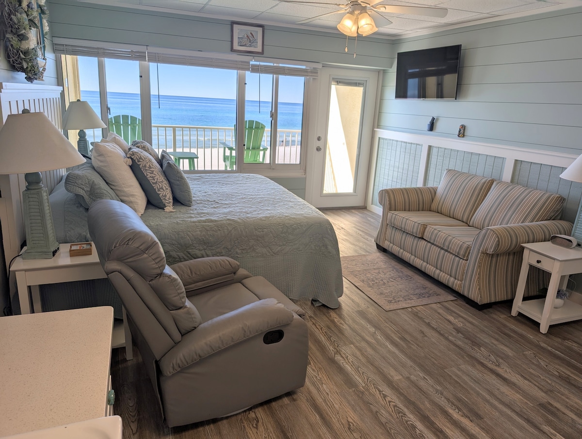 世界で最も美しいビーチの1つを見下ろす専用バルコニー、キングサイズベッド、壮大な夕日を楽しめるデッキチェアを備えた改装済みのオーシャンフロントのコンドミニアム。美しいタイル張りのウォークインシャワーと新しいアメニティ。ケーブルテレビと無料Wi-Fiを備えた50インチテレビ。フルキッチンとすべての調理器具を備えた便利さをお楽しみください。目覚ましと朝食をお楽しみください。専用バルコニーから日の出とコーヒーをお楽しみください。3月15日~10月31日は、無料のビーチチェア2脚とパラソル(1日45ドル相当)をご用意しています。 5階のコンドミニアム