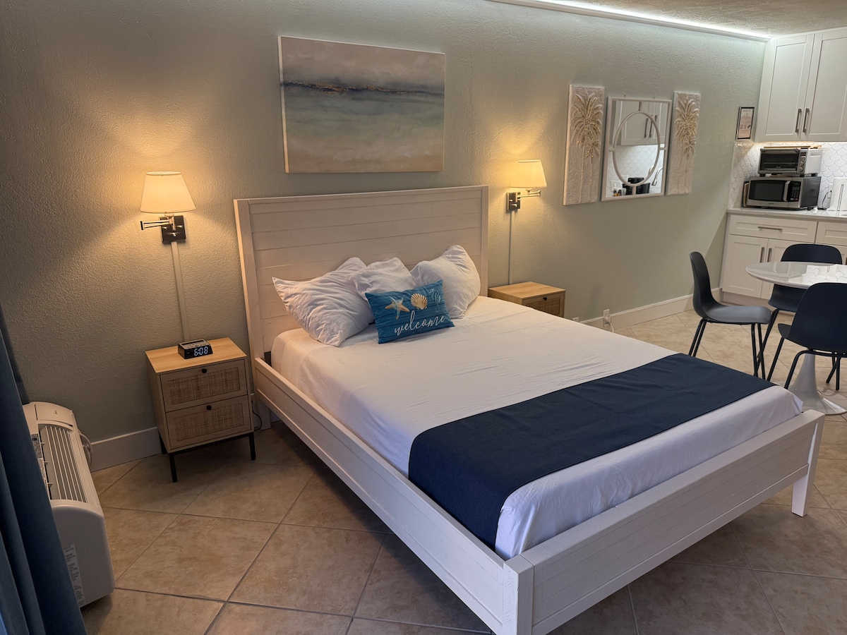 全新-ウォーターフロントホテルの客室-コンドミニアムは41のラマダインにあります。1階にあり、快適なクイーンベッド1台と引き出し式ソファがあります。ケーブル付きスマートテレビ、強力なWi-Fi。スタイリッシュなインテリア、洗面台、コーヒー/紅茶バー、冷蔵庫と電子レンジ。温水プール、ティキバー、グリル、毎日の食事とドリンクの特別料金。ライブミュージックも!ドアから美しいマリーナへ...ボートを持ってきたり、レンタルしたり!SRQ空港、USF、ニューカレッジ、IMGアカデミー、サラソータのダウンタウン、セントまで車で数分。アーマンズサークル&エリア内のすべてのビーチ!