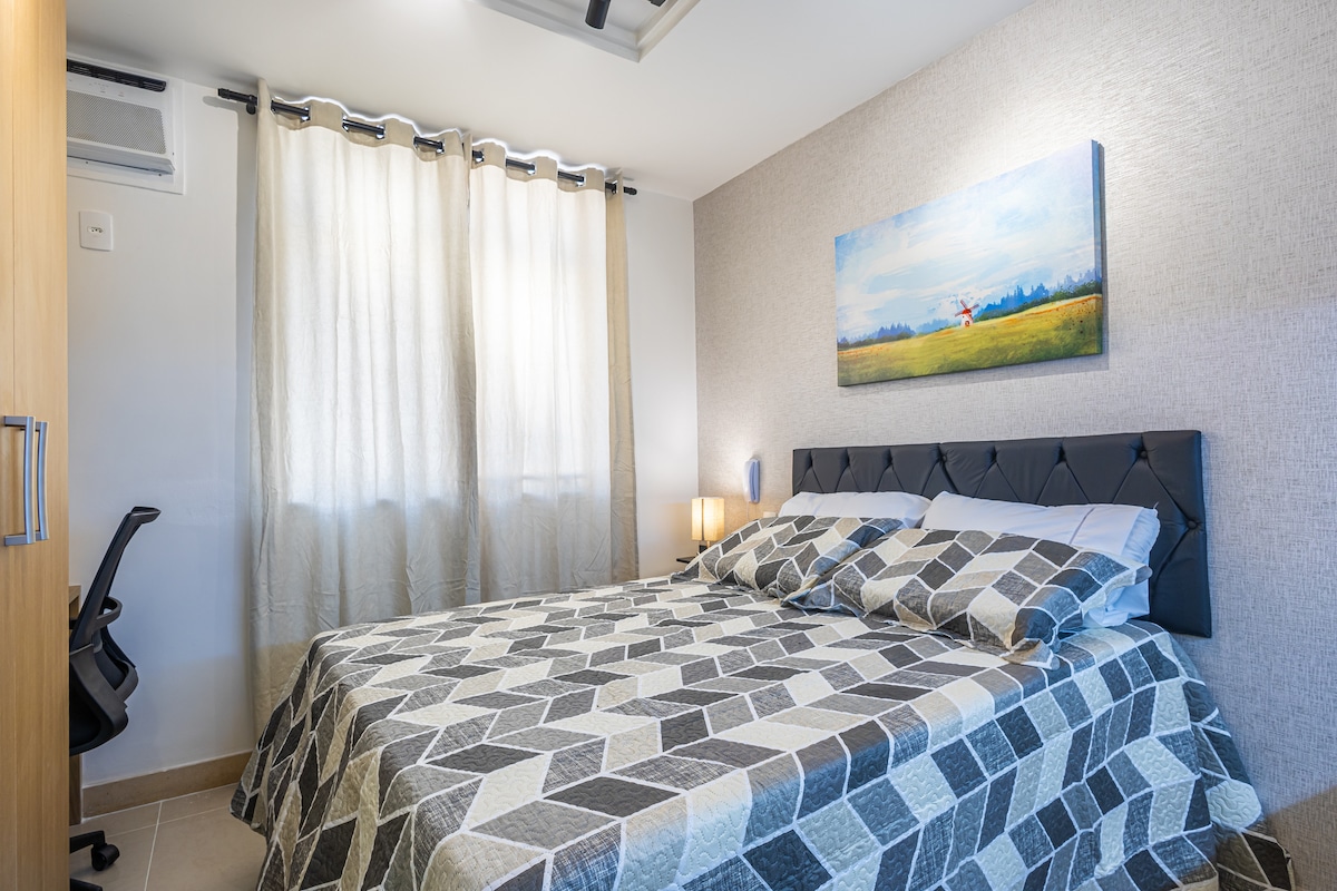 快適さと実用性を求める人にぴったりの快適なアパートメント。快適なダブルベッド、新しいスプリットエアコン、仕事用スペース、調理台、シンク、調理器具、家電が備わったミニキッチンがあります。バスルームは完全で広々としています。観光、勉強、仕事に最適で、中心部に戦略的に位置し、地下鉄のウルグアイアナ駅とVLTから5分です。さらに、お客様の利便性のためにスマートテレビを備えています。 快適に滞在し、すべてを手の届くところに!