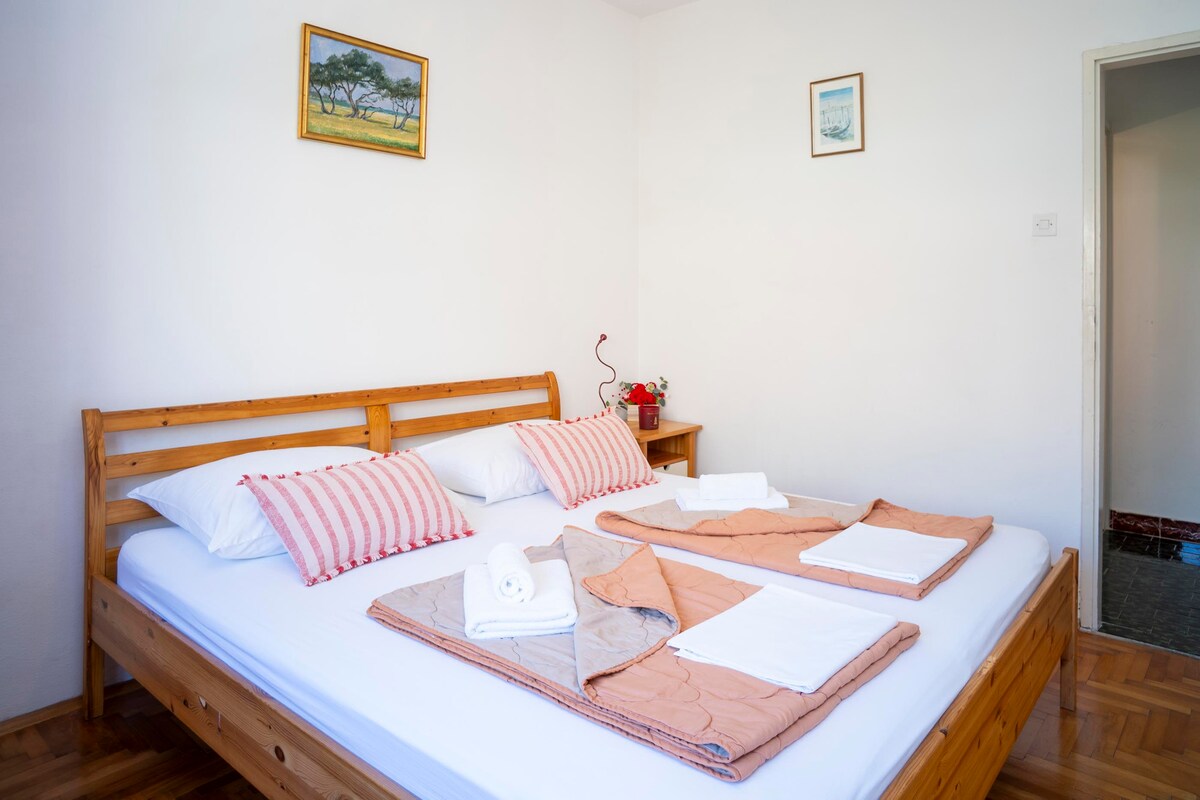 Villa MARは、海、ビーチ、遊歩道、ショップから100m以内の中心部に位置しています。 家の1階にあるこの小さなアパートは2名様に最適です(面積22平方メートル)。 キングサイズベッドとダイニングスペースを備えた寝室、独立したキッチン、バスルーム、廊下で構成されています。 エアコン完備で、北に面しているので自然の日陰と素晴らしい丘の景色が楽しめます! 共用バルコニーとグリルエリア。 カップルや学生の予算に合った短期または長期滞在に最適です。