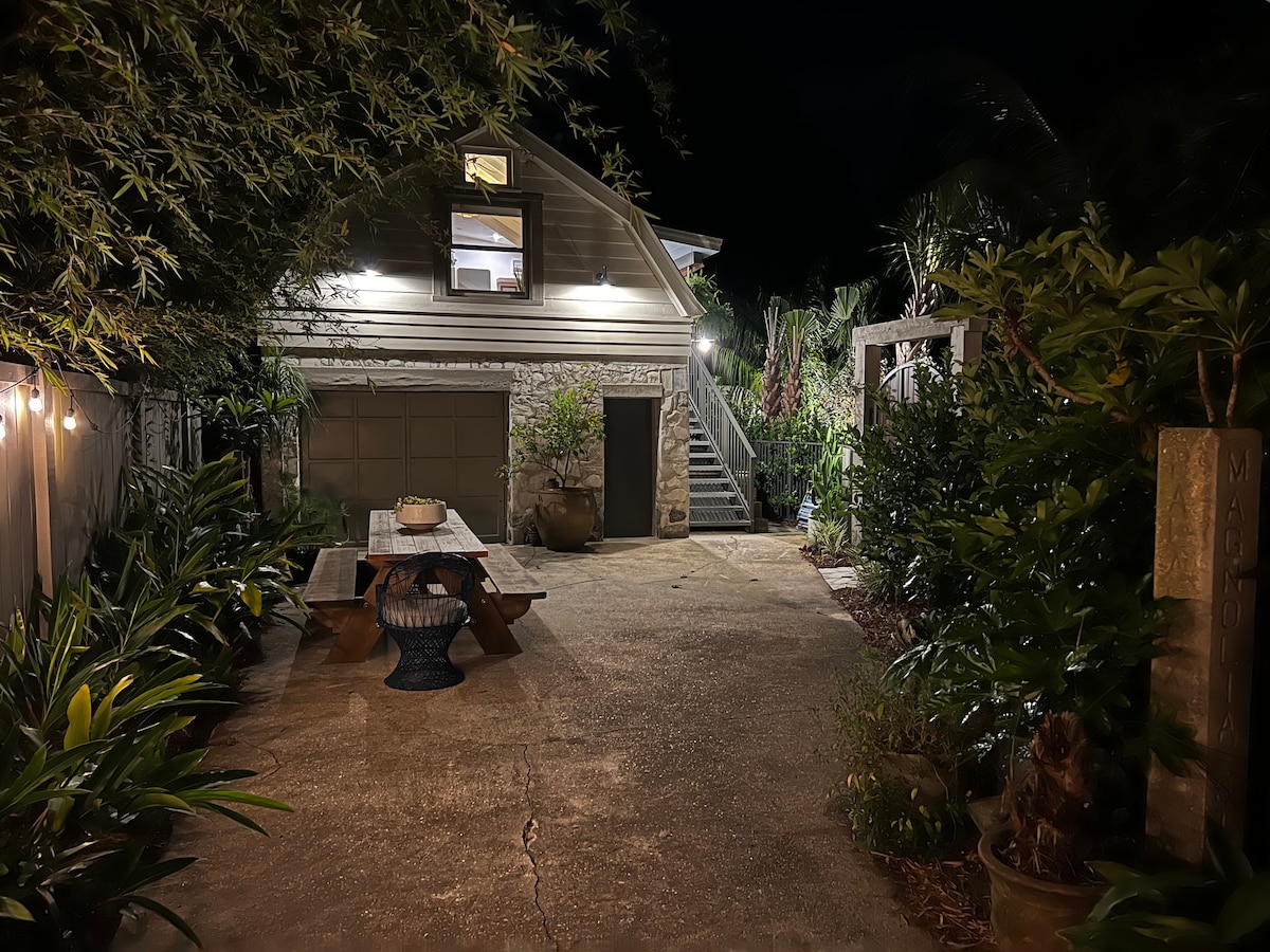 Live Oaks on the Bayouは、休暇中、出張中、またはビーチ休暇、結婚式、卒業式のためにこの地域に来る方に最適です。 ゲストハウスは私たちの家の裏にあり、専用の車道と駐車場があります。 玄関からすぐの静かで穏やかな中庭の噴水エリアで、プライベートな食事、コーヒー、カクテルをお楽しみください。 徒歩3 ~10分でさまざまなレストランがあります。 ここでは、ペンサコーラの最も貴重なエリアの一つで、常に花が咲いています。