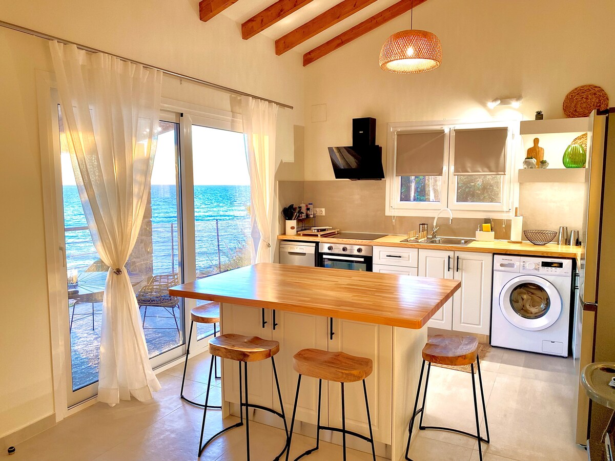 Escape to this enchanting seaside villa, where modern design meets breathtaking views. Large windows open to the endless blue and unforgettable sunsets, creating the perfect atmosphere for relaxation. Just below the house lies a unique beach — half sandy, half pebbled — inviting you to dive into crystal-clear waters any time of day. A rare retreat that combines luxury, tranquility, and direct access to the sea for an unforgettable stay.