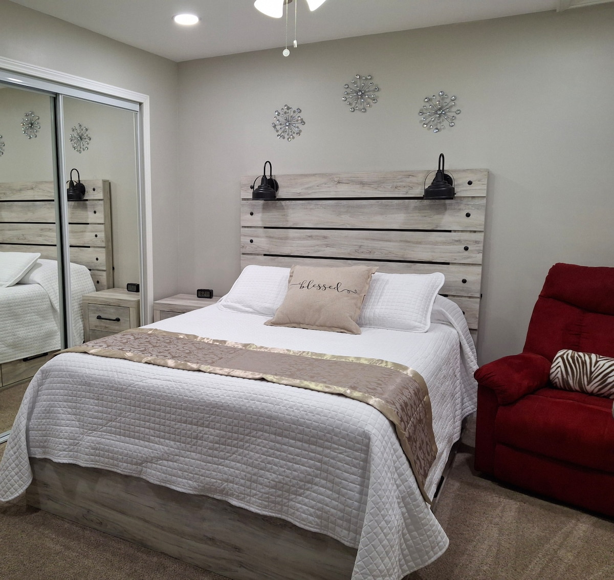 改装された地下リビングスペースでリラックスしてください。 この明るくモダンなリビングスペースには、数泊または数か月のご滞在を楽しむためのすべてのアメニティが揃っています。 ステートファームフットボールスタジアム(アリゾナ州カーディナルズ)から15分、ピオリアスポーツコンプレックスの春のトレーニング場まで徒歩圏内、アローヘッドショッピングモール、多くのレストラン、ピオリアP83エンターテイメント地区に近く、マリコパ郡の徒歩/自転車道システムに隣接しています。