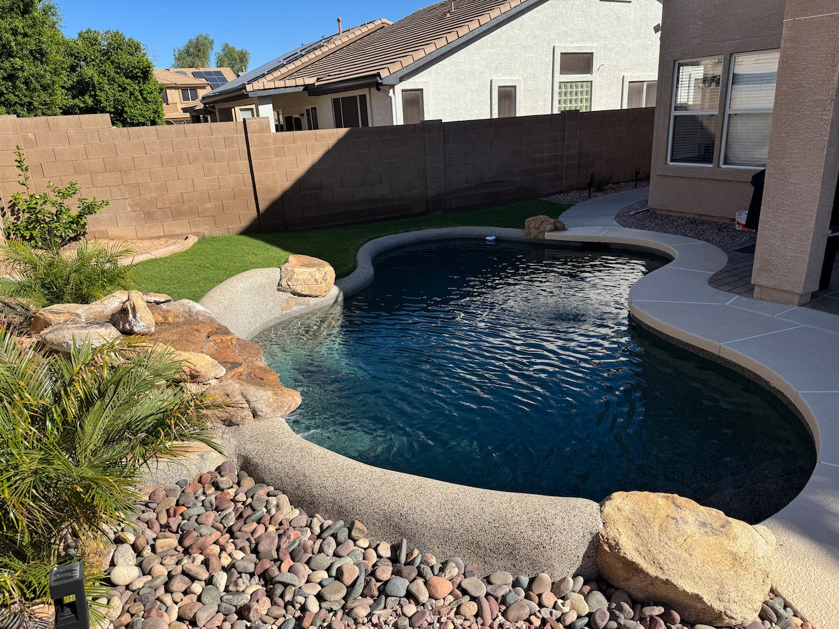 サプライズを訪れる際の広々としたスタイリッシュな宿泊先をお探しですか? 3ベッドルーム、2バスルームのレンタルホームをご覧ください! ウォークインクローゼットと専用バスルームを備えたアップグレードされたマスタースイートで、高級リゾートに滞在しているように感じることができます。しかし、それだけではありません。 アリゾナの暑さを打ち負かすためのリフレッシングなプールを完備した、あなただけのプライベートオアシスに足を踏み入れてください。 プールサイドでくつろぐ、泳ぐ、または日当たりの良いパティオエリアでくつろぐことができます。 *少額のペット料金でペットOKの宿泊施設*