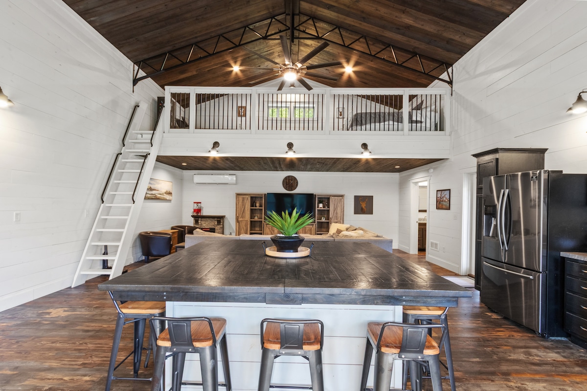 Welcome to this stunning barndominium where rustic charm meets modern luxury. Enjoy a beautiful loft overlooking a large open kitchen and expansive living space filled with natural light. Step outside to your private oasis featuring a gorgeous pool and refreshing outdoor shower, perfect for soaking up peaceful, laid-back vibes. A truly unforgettable retreat designed for relaxation and style. Main House on the other side of the property is also available to rent!