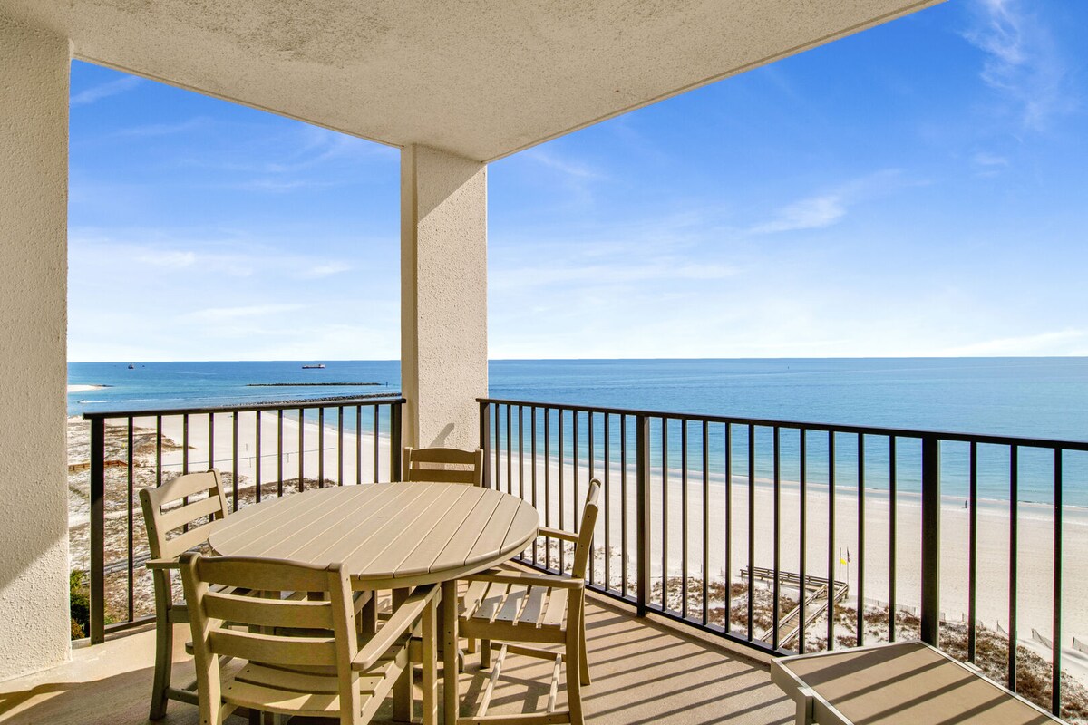 ASK about DISCOUNT rate for monthly stay in January and February 2026. DON'T FIGHT THE CROWDS for space on the beach! Unwind in our comfortable 4th floor Beach Front "Slice of Paradise" with private beach. The balcony offers unobstructed, gorgeous views of the Gulf and the beautiful white sands of Perdido Key. Soak up the sun as you kick back on the balcony and count the dolphins while being lulled by the sound of the waves and the salt air breeze. Recently UPDATED-New photos coming soon!