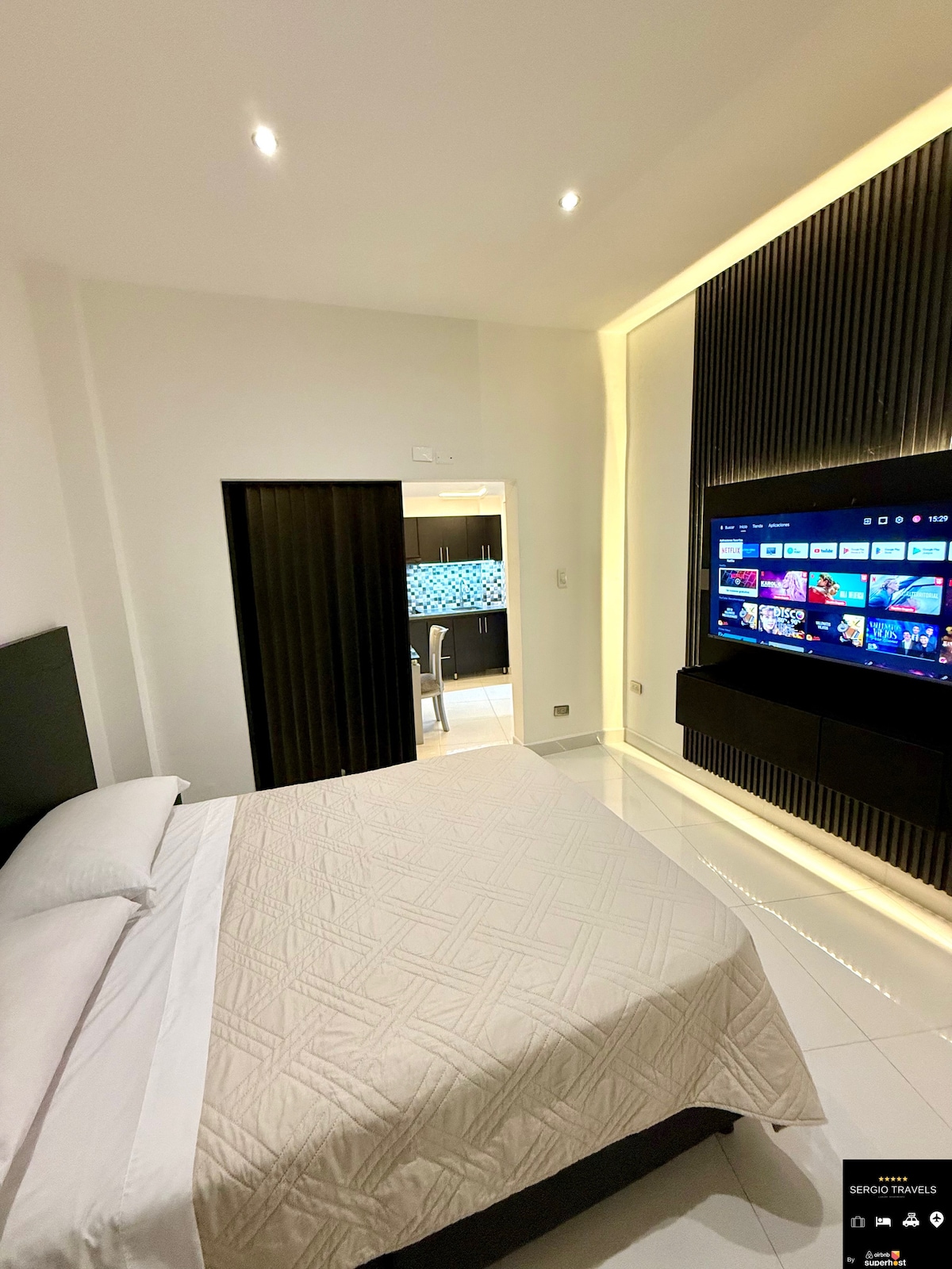 2 部屋と 2.5 バスルームを備えた豪華なペントハウスタイプのアパートです。このエリアはとても静かで、アクセスはいくつかあります。マテカーニャ国際空港と交通ターミナルの近くで、レストラン、バー、ショッピングセンターの近くです。各部屋にはテレビとクローゼットがあります。すべてに遮光機能があります。 大人数グループに最適。屋根付きの無料駐車場1台分。 建物には24時間セキュリティがあります 注:アパート内は全面禁煙です。