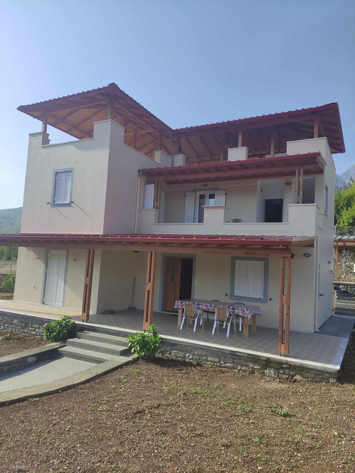 私たちはTrebeshina Range - Footer-Nemçkaの下に位置しています。Permetの中心部から8 km、Makesの温泉とLengaricaの峡谷から6 km離れています。Vjosa Riverから500 m離れています。この風景は、私たちとの滞在に思い出に残るユニークな場所にあります。旅館の隣の山、周辺の木々、伝統的な調理器具、伝統的なガラスがあります 各ゲストは家の所有者が提供しています。また、家の周りの裏庭に植えられた季節の野菜も用意されています。これにより、他の人とは特別で特徴的です。