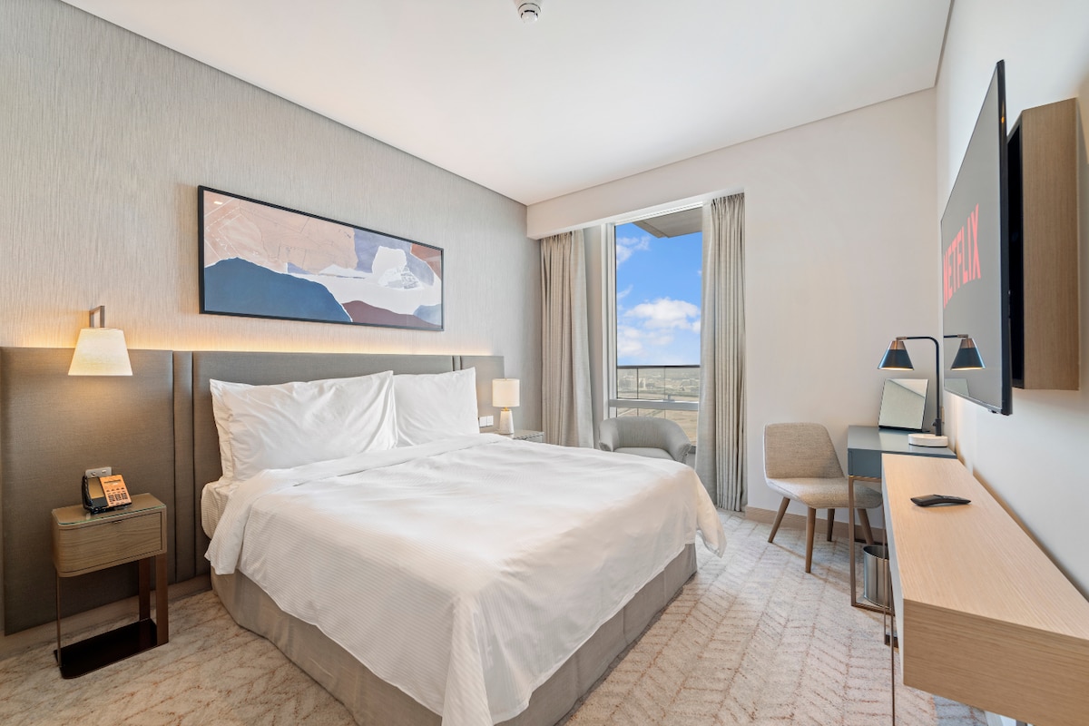 A modern apartment with a private balcony that offers a gorgeous view the of community garden. Perfect for couples who are holidaying in Dubai! This is equipped with every amenity to enhance your stay, like a King bed, fresh sheets and towels, coffee/tea, all kitchen utensils, high-speed internet (Wifi), TV, pool and gym access. Situated ideally in the beautiful The Greens, you have direct access to all of Dubai via Sheikh Zayed Rd. as well as Al Khail St. We can’t wait to host you in Dubai!