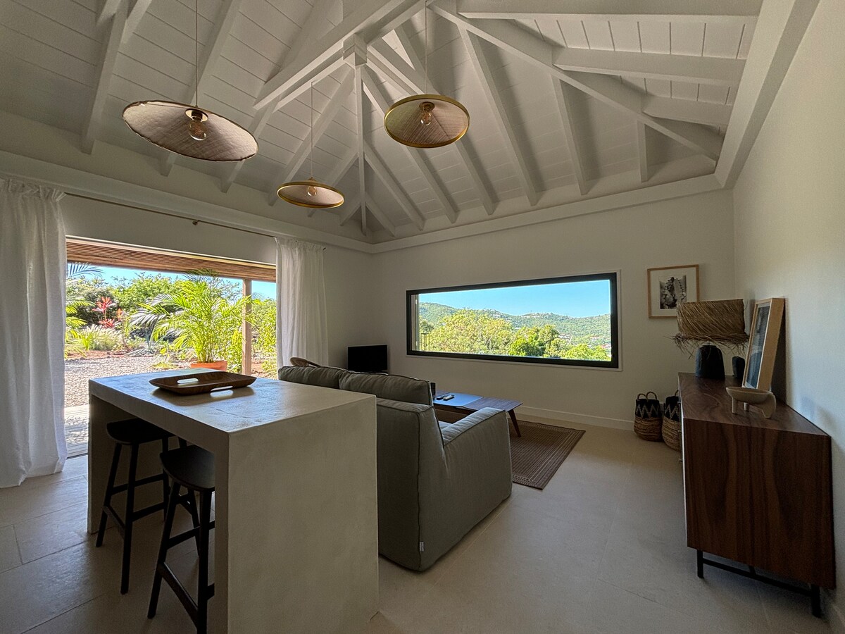 RIDE is a 2017 VILLA located on hilltop of anse des cayes offering a beautiful seaview. 5 min driving from the beach , gustavia ( main city ) , and a delicious bakery store. It offers quiet and privacy while remaining close to everything. The villa can welcome 4 PEOPLE in 2 BEDROOMS, each one having their own private massive wood bathroom . The villa is also accessible to people with REDUCED MOBILITY thanks to its one level access.