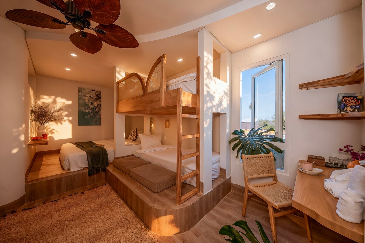 忙しい日常生活から離れてリセットできる場所をお探しで、ペースダウンして肩の力を抜ける時間を過ごしたいとお考えの方には、37Villaがおすすめの宿泊先です。お一人様、カップル、ご家族でのご利用に最適です。 ここでは、自由な価値観を持つ静寂な空間でゆったりと過ごすことができます。 地元のカフェ、ショップ、スパに近く、ムイネービーチまで15~20分です。 料理をしたり、休息したり、ご自身のペースで過ごしたりできるスペースがあり、居心地のよい映画の夜を過ごせるプロジェクターも備えています。 お子様用のブランコ、読書用の静かな隅、そして自然と一体感のあるワークスペースもあります。