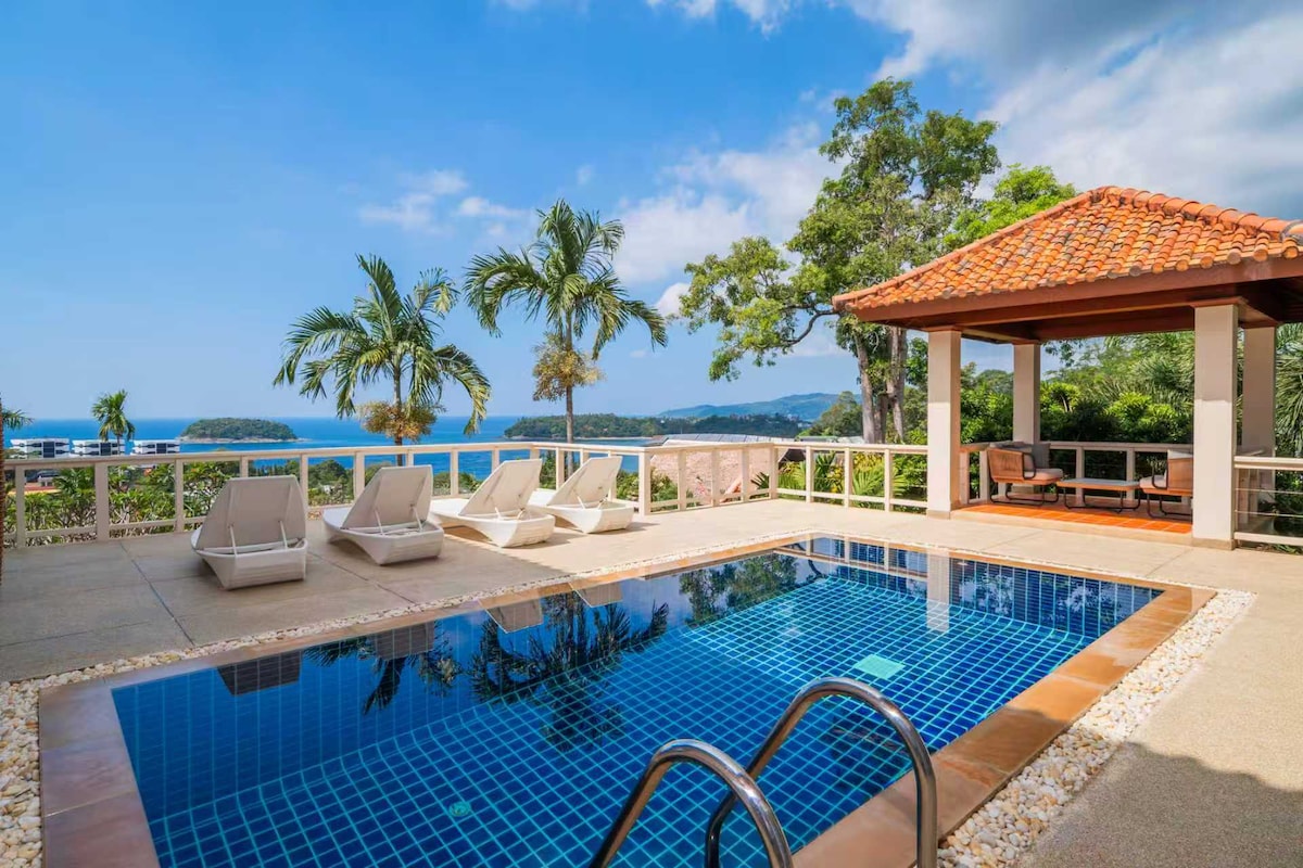 5ベッドルームの海が見えるプールヴィラ、カタビーチまで徒歩で行けます