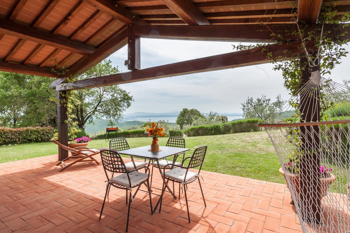 アパートは、土地、子供のための遊び場、緑に囲まれた2階建ての一戸建ての家の1階にあります。 とても快適で静かで、目覚めのサインは家のオンドリさんです。アパートは、多くの見どころに近く、シエナとペルージャの間の高速道路から2km、ペルージャから30km、シエナから40km、近くのコルトーナから20kmの場所にあります。また、島々や美しいアッシジへのアクセスにも非常に便利です。 この静かな宿泊施設で、ご家族と一緒にリラックスしてください。