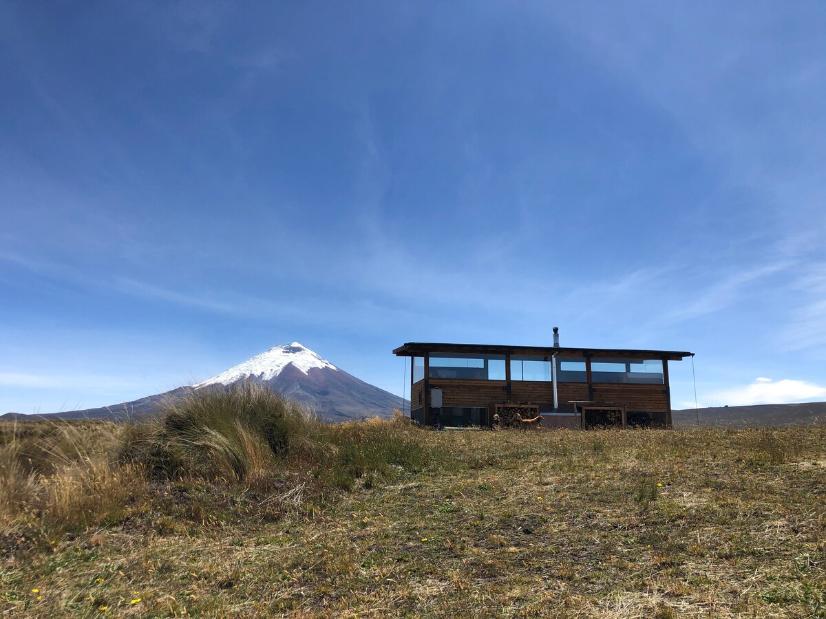 ロフトデザイン、ドラマチックな窓、高い天井の小さな家です。コトパクシ国立公園の北管理局から10分です。 火山の谷にある戦略的な立地により、山と夜空の比類のない360度の景色が見渡せます。 高い平原の上の3650mの高さに位置し、19ヘクタールの専用プライベート保護区内にあります。 晴れた日には、最大7つの火山が見えます。四輪駆動車が必要です。ペット歓迎です。