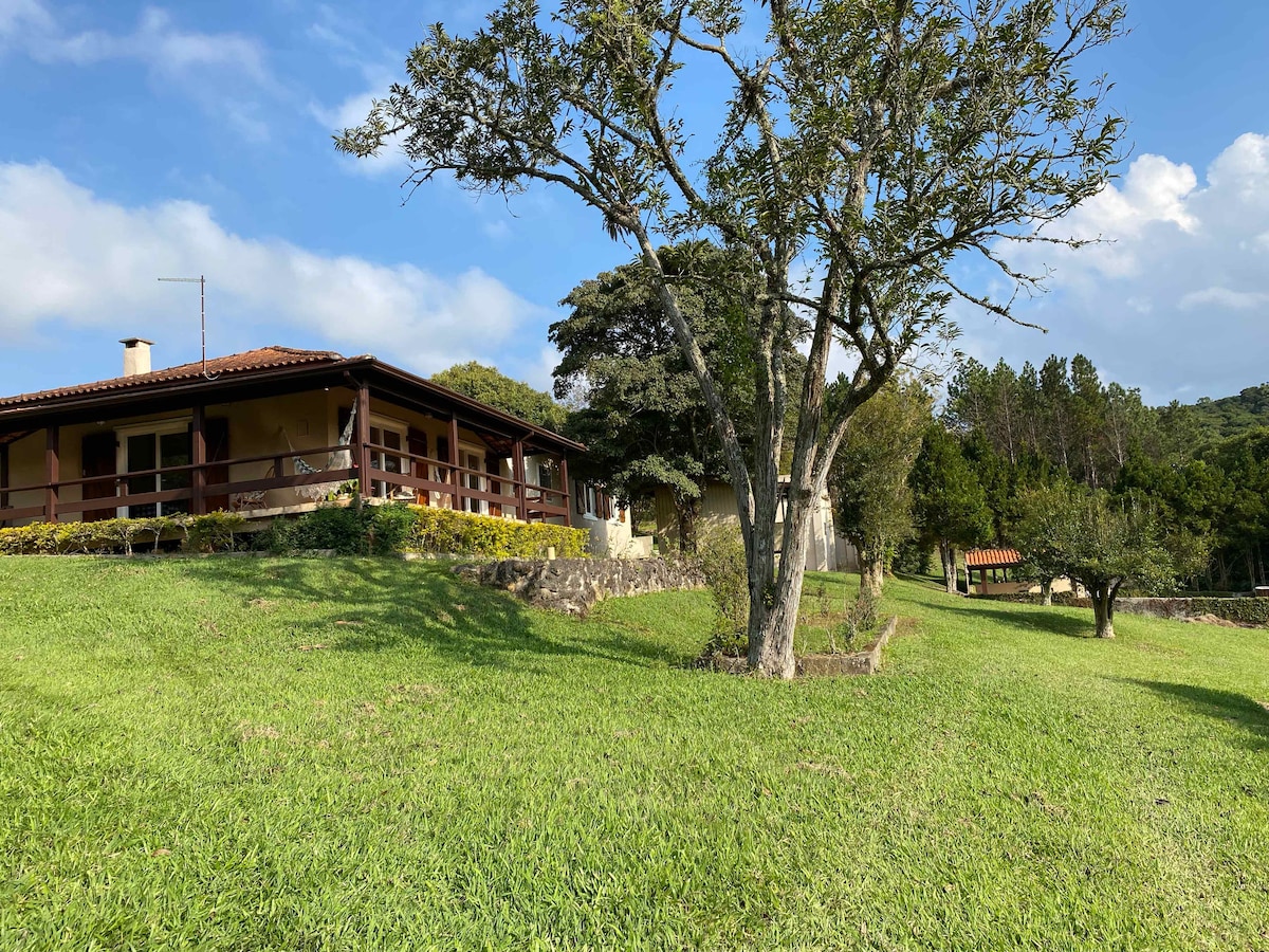 Sabe aquele lugar onde se pode dormir com a janela aberta, chave do carro no contato? É aqui o lugar, Pets são super bem vindos. Relaxe com toda a família nesta acomodação tranquila, segura e acolhedora silêncio absoluto, integração com a natureza, trilha ecológica e cachoeira na propriedade, pequena piscina totalmente privativa. a 25 min dos centros urbanos, 21 km Shopping Iguatemi. No frio tem lareiras pra aquecer, no calor Piscina pra refrescar.