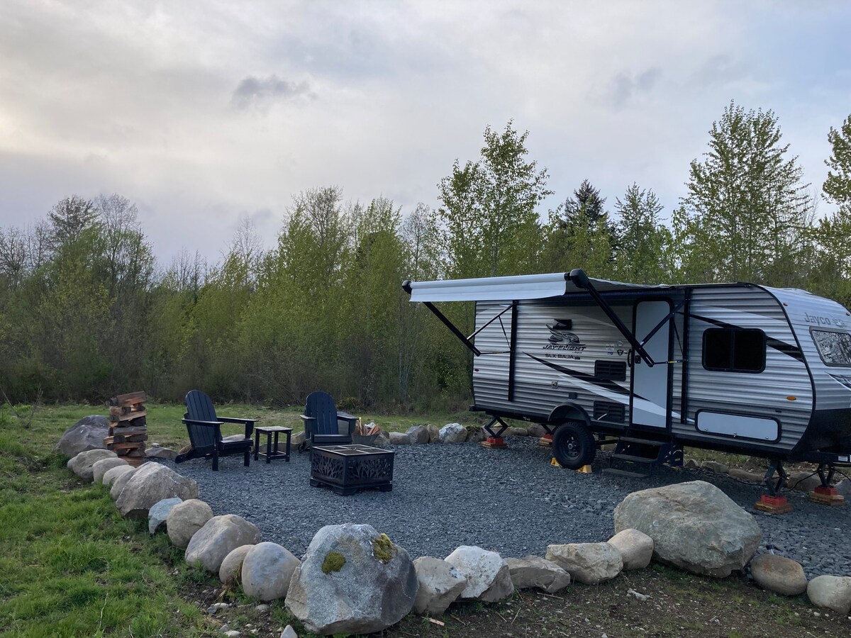 「The Heart of the Harbor」へようこそ。 ギグハーバーのダウンタウンからわずか5マイルの古代林に囲まれた、あなたが探し求めていた隠れ家です。 自分だけの自然の中にいるような「グランピング」体験を提供しています。 シアトルから車でわずか1時間ですが、他のどの指標で測っても別世界にあるような感じです。 森に囲まれた私たちの木の茂みに面した30フィートx50フィートの砂利のパッドにある素敵な屋外スペースを備えた素晴らしいトラベルトレーラーです。駐車して、荷物を解いて、リラックスしてください。