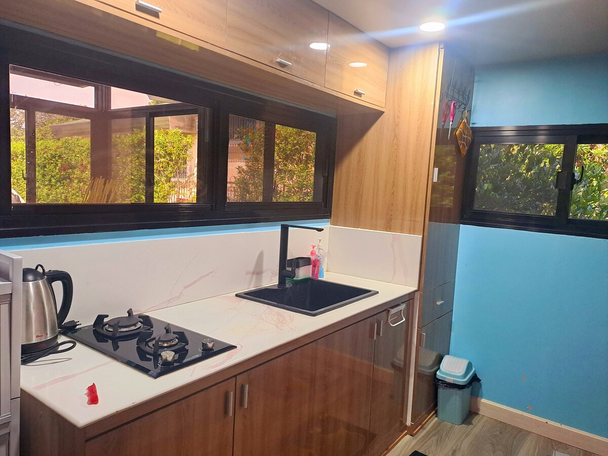 エアコン完備の寝室2室、トイレ2室、バスルーム2室を備えた2階建てのタウンホームでステイケーションをお楽しみください。リビングルームにもエアコンが備わっています。寝室は2階にあり、高齢者には向いていないかもしれません。 簡単な調理ができるキッチンアメニティが揃っています。24時間365日清潔で健康的な水を提供するエコスフィアUV浄水器が付いています。水筒を持参する必要はありません。 私の宿泊施設の裏には森があるので、虫や蚊は自然に発生します。窓とドアを開けないでください。