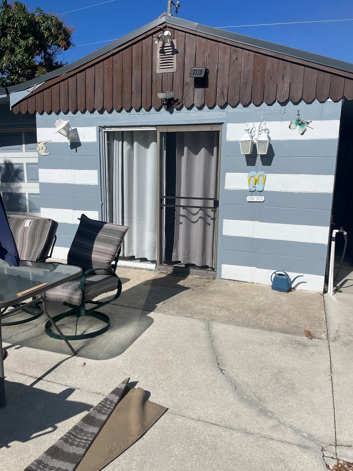 大きなパティオのあるサニーアイランドコテージ