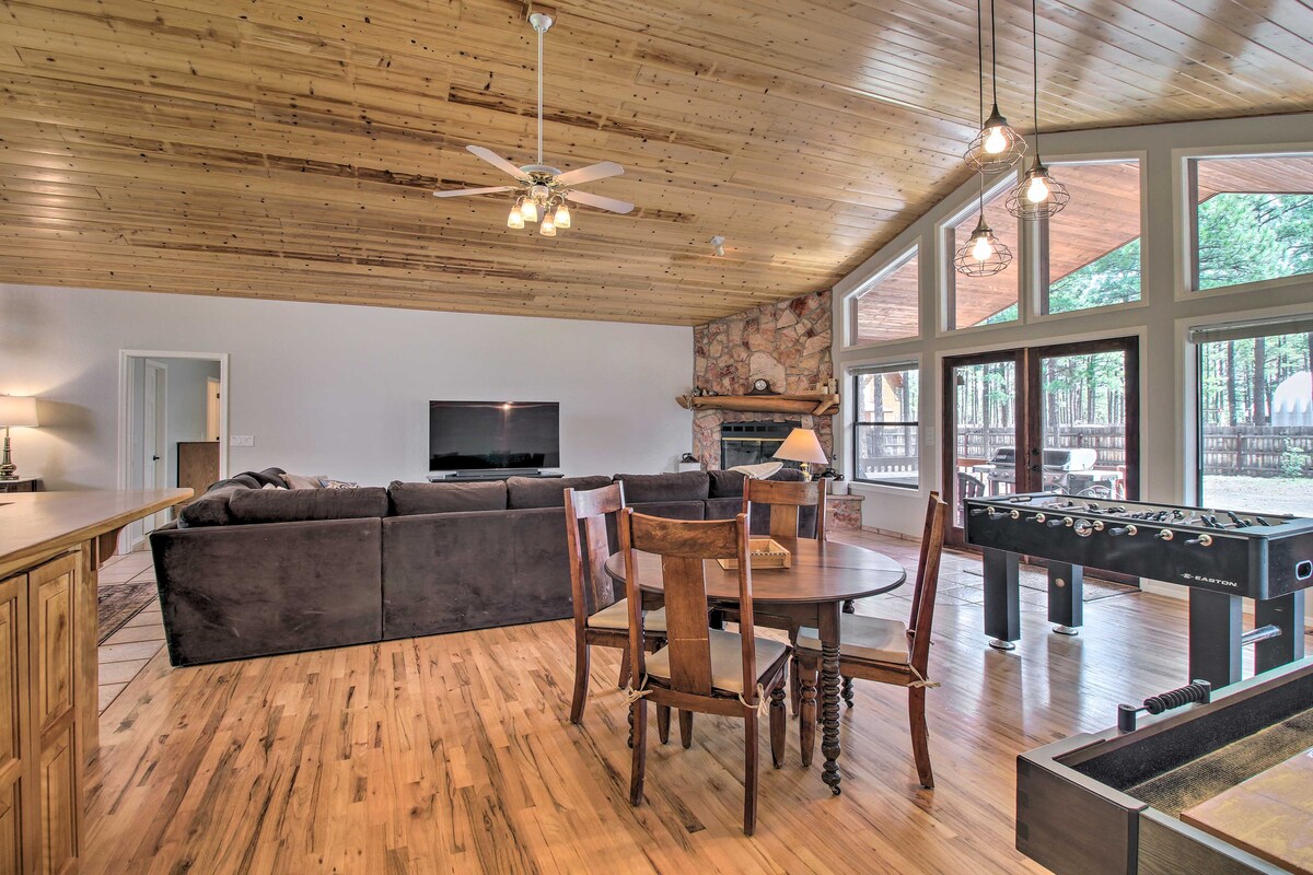 アリゾナ州ホワイトマウンテンに位置するこのパイントップのバケーションレンタルは、次の休暇をお過ごしいただけます!この3ベッドルーム、3バスルームのキャビンは、アパッチ国有林の端にあり、裏庭から直接美しいトレイルを歩くことができます。このエリアをさらに探索するには、狩り旅行に出かけたり、ショーロー湖で1日を過ごしたり、ホンダカジノで運試しをしたりしてみましょう。お好きなアクティビティをすべて楽しんだ後は、設備の整ったインテリアを活用して、仲間と一緒にゲームを楽しむ夜をお楽しみください。