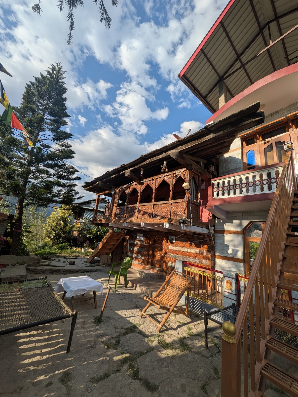 A true-blue working Apple orchard, barely 400 meters from the iconic & world-famous NAGGAR CASTLE, in a quaint little village called Chanalti. It is a rustic village set-up but fitted with all modern-day comforts - along with unending cups of herbal tea, coffee & stories to share! It is a place where the air is always fresh, the views are always stunning, and our hospitality is always homely, warm and welcoming! Min 2 Night Stay required! Pls. DO NOT book for 1 Night. STAGS NOT ALLOWED 🚫