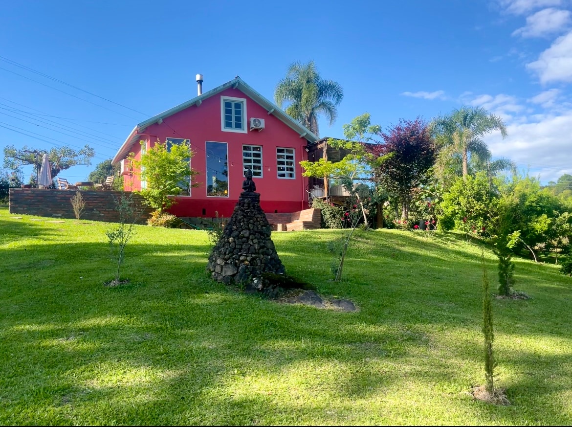 Estamos à 4,3 Km (7min) do centro da cidade. Localizada no sitio junto a nossa casa na Linha Ávila Alta 2090, percurso todo asfaltado. A casa é construída artesanalmente, com teto verde e amplo jardin. Acomoda 4 pessoas, 2 adultos e 2 crianças,1 quarto (cama de casal e sofá cama), 1 banheiro, cozinha equipada com frigobar, fogão, microondas, cafeteira elétrica, grill e utensilhos. Roupas de cama e banho também são disponibilizadas, além de conectividade WI-FI.