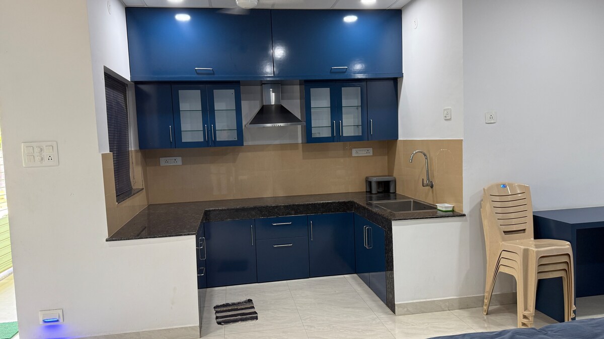 アンバー&ジェイドステイズへようこそ。ブバネシュワルの静かな郊外にある、自宅のような快適な宿泊施設です。快適さと自然を融合させたスタイリッシュな1BHKには、明るいリビングエリア、設備の整ったキッチン、豪華なクイーンサイズベッドルームが備わっています。緑に囲まれた、ペットと一緒に過ごせる静かな環境で、Wi-Fi、エアコン、スマートテレビなどのモダンなアメニティ・設備をお楽しみください。平穏と利便性を求めるカップル、旅行者、リモートワーカーに最適です。ペットと一緒にAmber & Jade Staysで快適にリラックスしましょう。🐾