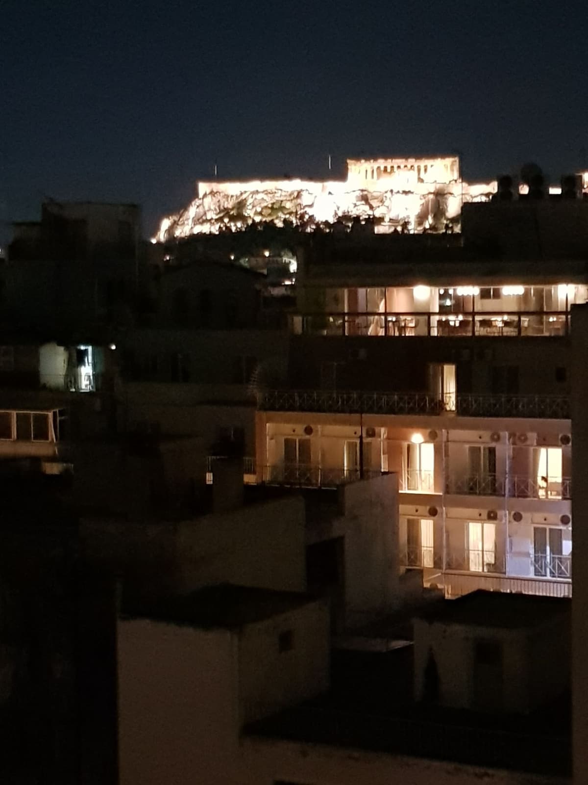 アテネ中心部のアパートから見える素晴らしいアクロポリスの眺望