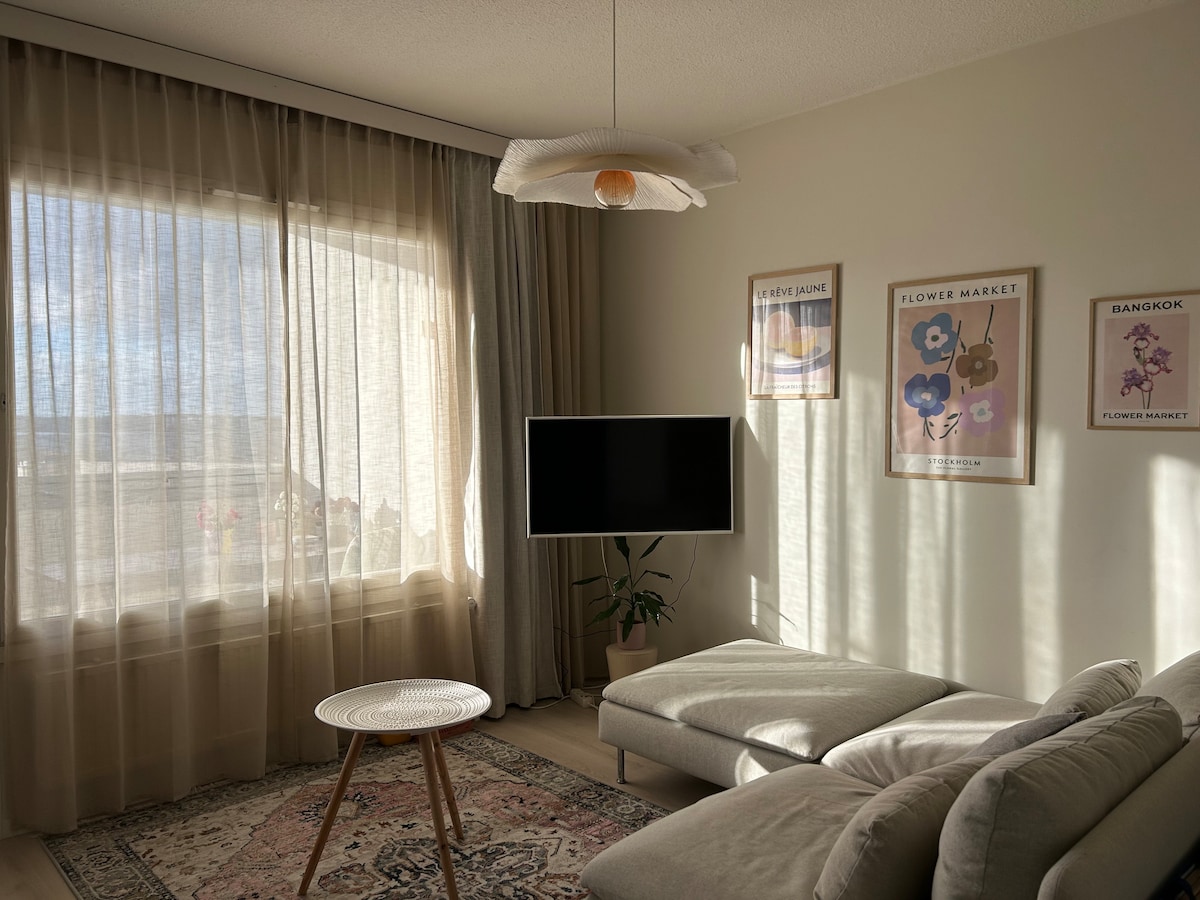 タンペレの中心部の近くにある、ナシヤルビ湖のユニークな景色を望むスタイリッシュなテラスアパートメント。モダンなアパートには、短期滞在に必要なものがすべて揃っています。隣には公園、レクリエーションルート、海岸線、水浴場があります。地域の雰囲気はリラックスしてユニークです。この地域は美しい水域に囲まれており、サルカンニエミ、鉄道駅、中心部は徒歩圏内、約1.5 kmです。寝室にはダブルベッド、リビングルームには必要に応じて折りたたみマットレスやエアマットレス、ベビーベッドもご用意しております。