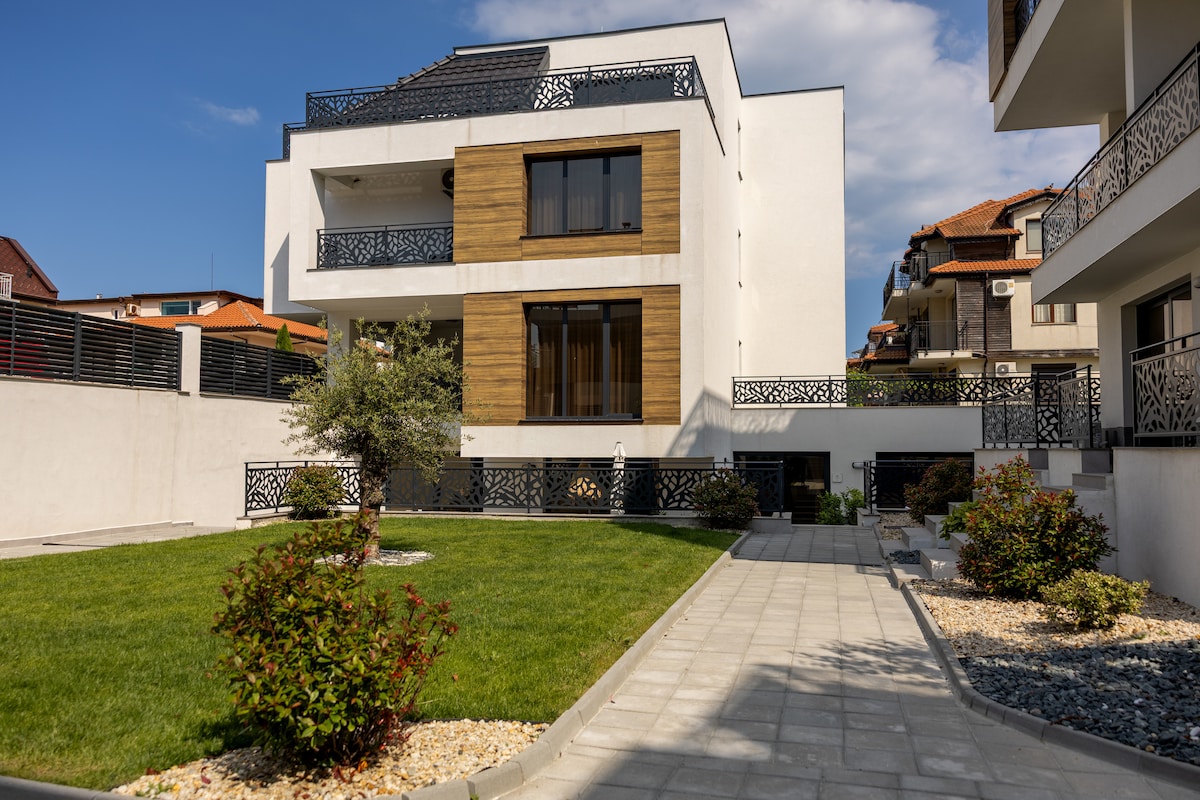 新しくて快適な海辺のアパートへようこそ! 海辺でリラックスできるように、私たちはたくさんの愛を込めて家具を揃えました。アパートはブルガスで最も美しいクローズドコンプレックスの1つであるダイヤモンドビーチにあり、海に面しています。 ゲストは以下を利用できます。 • 子供用エリア付き屋外プール • リラクゼーションスペース • バーベキューエリア • 緑豊かな公園 • 24時間警備とビデオ監視 プール サウナ ガレージ