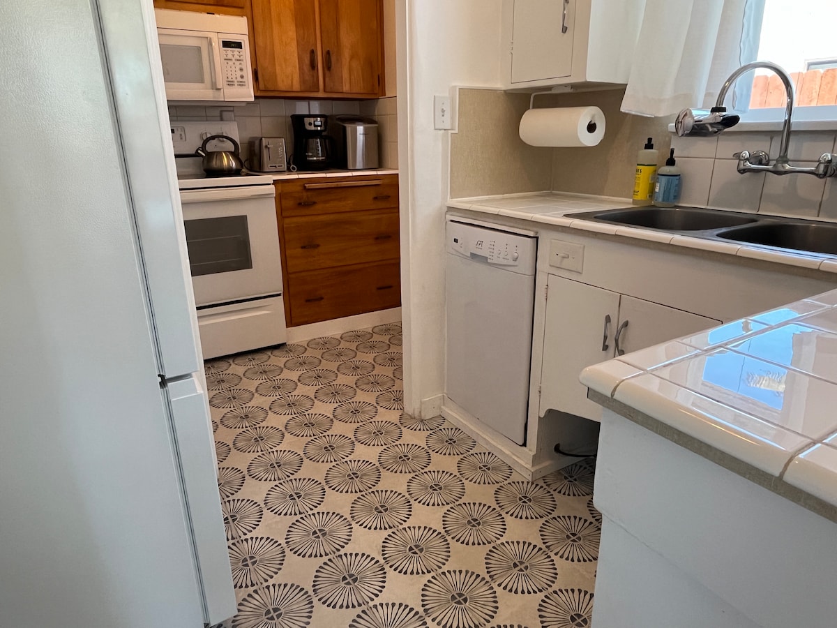 ビーチから1/2ブロック、上階のバンガロー、清潔、家具付き、オープンフロア、素晴らしい部屋、デッキ、ダイニング、リビングルーム、クイーンベッド/遮光カーテン付きの寝室1部屋、良好なWi-Fi、Roku、日光浴用の大きなデッキ、バードウォッチング。野生地帯と都市の境界線に位置しています。アライグマ、コヨーテ、春にはツバメの巣、時にはクモが外で巣を作るのを見たことがあります。私たちは都市と荒野が出会う場所にいます。 長期滞在も可能です。お問い合わせください。カレンダーはしばしばブロックされていますが、日付を開けることができます。
