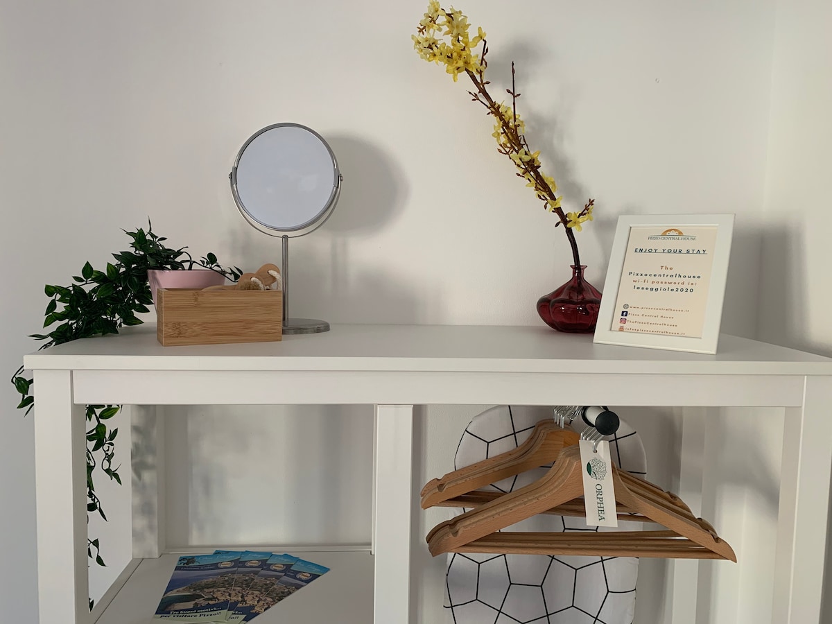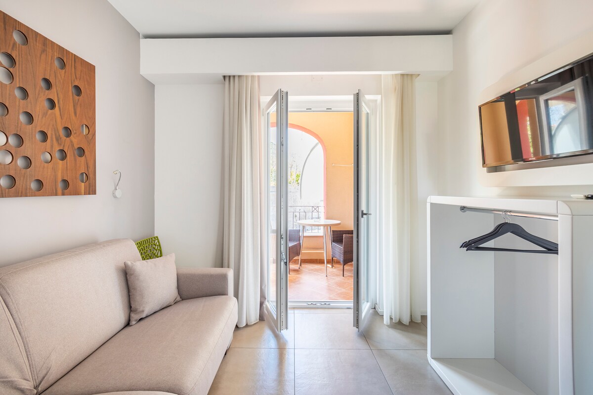 Ampia camera, dotata di ogni confort e di una piccola terrazza con una vista mozzafiato sulla città e sul mare. La camera è dotata di televisore, asciugamani, asciugacapelli, plaid, due cuscini ulteriori, kleenex, calzascarpe e levapelucchi. E' dotata di una terrazza che si affaccia sull'intera cittadina, perfetta per gustare un buon bicchiere di vino in compagnia.
