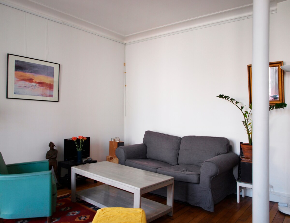 エレガントなパリのアパートをお楽しみください。 また、15年間のパリの経験と、近隣エリアやパリのアクティビティに関するヒントや習慣を共有することもできます! アパートには家具が完備されており、リビングルームに面したキッチン、高品質のダブルベッド( 160 × 200 )を備えた寝室、バスルームがあります。 アパートは4階と最終階にあります(エレベーターなし: XXLの荷物にはお勧めしません) !