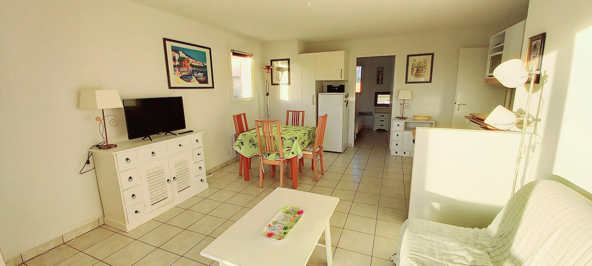 ラ・ボールの国際ゴルフ場にあるプール付きのレジデンス内のアパートメント。陸と海の間に位置し、寝室、リビングルーム(ソファベッド、テレビ)、設備の整ったキッチン、バスルーム(バスタブ)、シャワールーム、トイレ、テラス、庭(デッキチェア、ガーデンファニチャー、パラソル)、ボックスがあります。 リネンが用意されています アパートは海から10分です。 静かでリラックスできます! 6月15日から9月15日までプールをご利用いただけます。