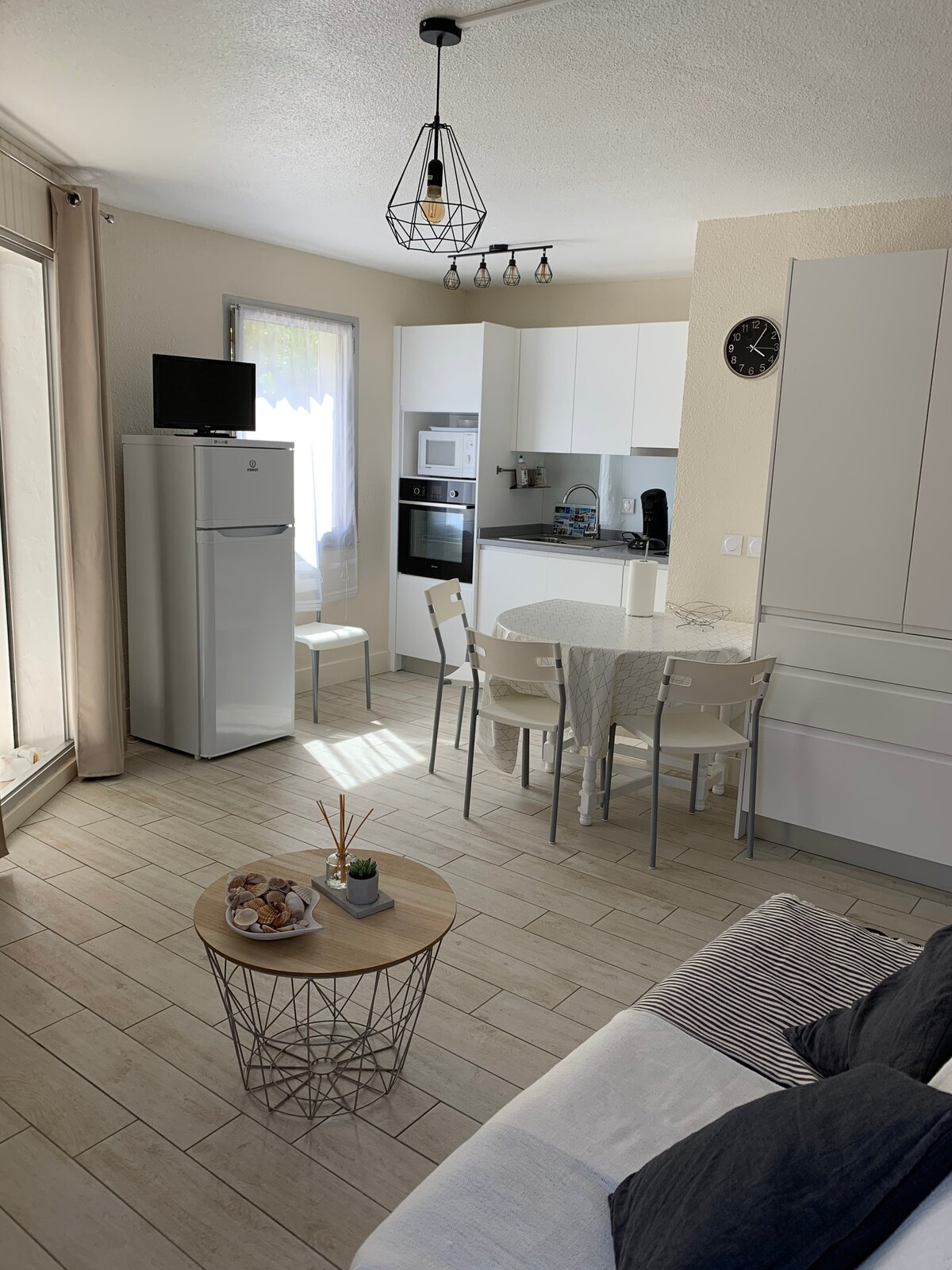 街の中心部から数歩、ビーチと森の中間に位置する小さなコンドミニアムの2階にあります。 明るく、改装された大きな「デュプレックス」スタジオ。上の階に寝室スペースがあります。 共同住宅の庭には、屋外スペース(ガーデンテーブルと椅子)が整備されています。 大人のための自転車2台(+自転車用チャイルドシート、折り畳みベッド、リクエストに応じてベビーチェアを貸出)がご利用いただけます。素晴らしい休暇をお過ごしください! 1階:140cmのソファベッド1台、2階:80cmのベッド2台または160cmのベッド1台
