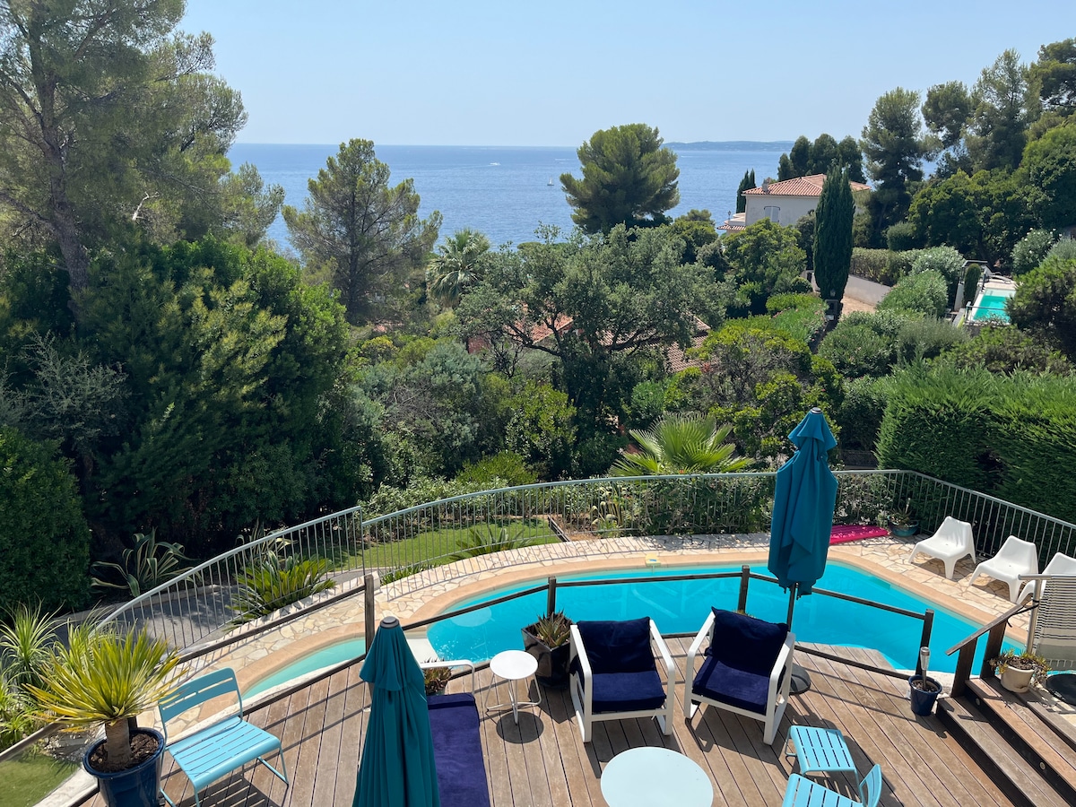 海とエステレル山脈(赤い岩)の素晴らしい景色を望む宿泊施設「Les Lauriers du Rastel」をお楽しみください。理想的な立地です。 家族や友人との食前酒や食事の際には、テラスからの海の眺めを楽しむことができます。 風景の変化と優しい生活が保証されています!ここでは時間が止まります。 宿泊施設は海から直線300メートル、ビーチから徒歩8分です。 2026年の🏊♂️🚨新着情報:ヴィラの2つの住居からアクセス可能な4m x 8mのプールの建設。