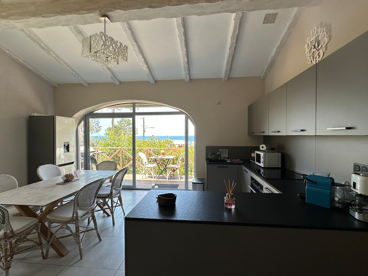 サゴーネとカルジェーゼの間の入り江に位置する素晴らしい立地の、海に面したエアコン完備の一軒家。手つかずの白い砂浜への専用アクセス付き。家族や友人と一緒にリラックスするのに最適です。 季節によっては、砂浜にポシドニア(有毒ではない)が多かれ少なかれ生えています。ポシドニアは海底の質を保ち、海岸の侵食を防ぐために必要な植物であるため、保護植物として指定されています。 45分:アジャクシオ空港と港。10分:商店街。