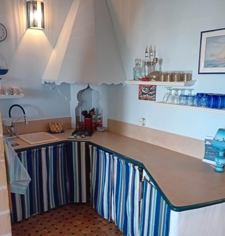 Questa bomboniera, realizzata con gusto e attenzione ai dettagli, rimane all'interno del Residence Mogador Beach, proprio davanti alla spiaggia di Essaouira. Residence dotato di piscina comune, parcheggio e guardianaggio 24/7. L'appartamento ha una grande camera da letto matrimoniale, con vista spettacolare sull'oceano, 2 bagni, un grande salone con cucina attrezzata, un divano che può diventare il secondo letto capace di accogliere 2 persone. WiFi fibra. Bella vista mare. Gestione professionale
