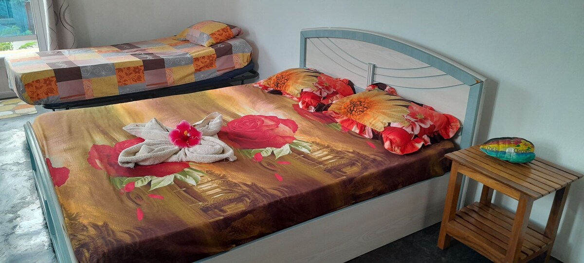 "Escape to our cozy retreat in the heart of Rodrigues! 🌴🏠 Our charming guesthouse offers a tranquil haven with stunning views, surrounded by lush greenery. Relax on the veranda, unwind in the shared lounge, or explore the local culture and beauty of the island. Perfect for couples, solo travelers, or friends looking for a peaceful getaway. Enjoy your stay with us! 😊"