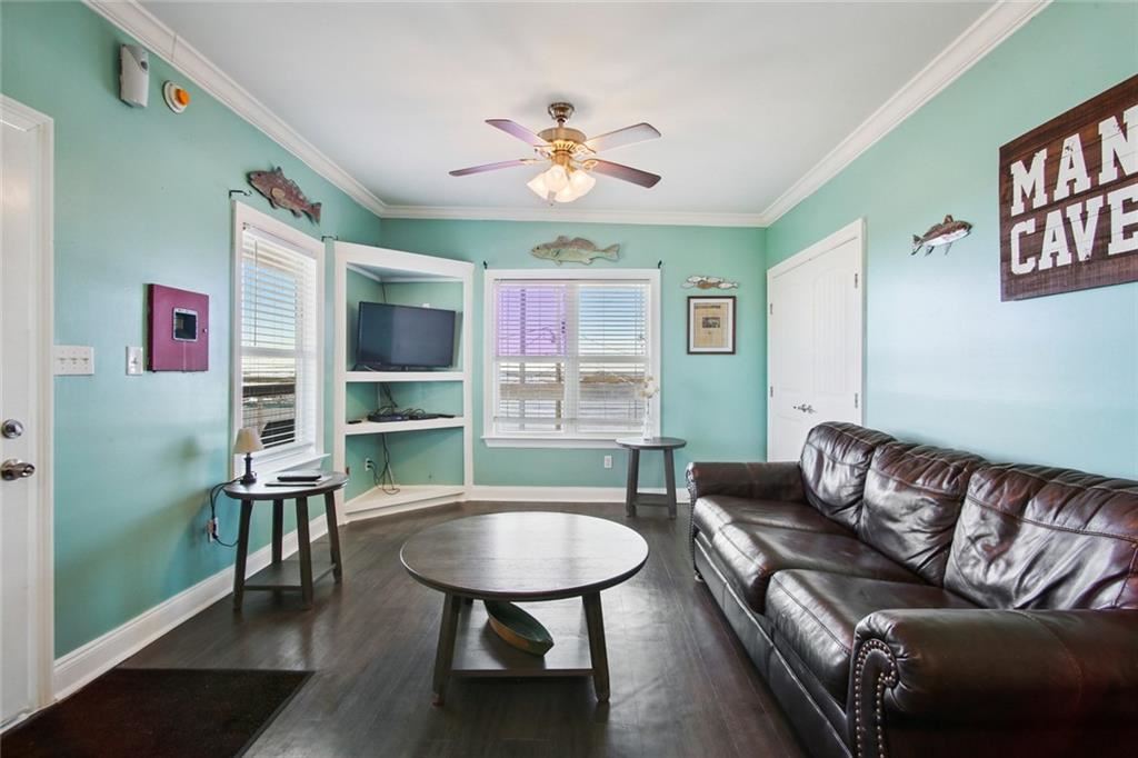 Watch the sunrise over Grand Isle Beach from your gulf front porch, then head down the private path for a day in the surf and sand. This fully remodeled 8-bedroom home gives big groups plenty of space to cook, hang out, and unwind—whether that’s upstairs in the open living areas or downstairs on the covered deck (made for seafood boils and family cookouts). Shops, bars, and restaurants are all within a short walk/drive, making this the perfect beachy getaway spot for the entire crew.