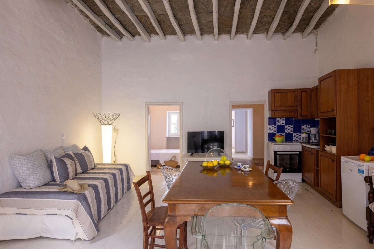 ピルゴスの伝統的な集落は、長い歴史を持つキクラデス諸島で最も絵のように美しい村の一つです。 村の中心広場(プラタノス)と公共駐車場からすぐ近くにあり、家族が必要とするものすべてに近い場所です。 このスペースは、ダブルベッドを備えた2つの寝室と、ベッドになるソファがあります。キッチンとリビングルーム、バスルームが一体化しています。 また、ダイニングエリアを備えた快適な中庭もあります。