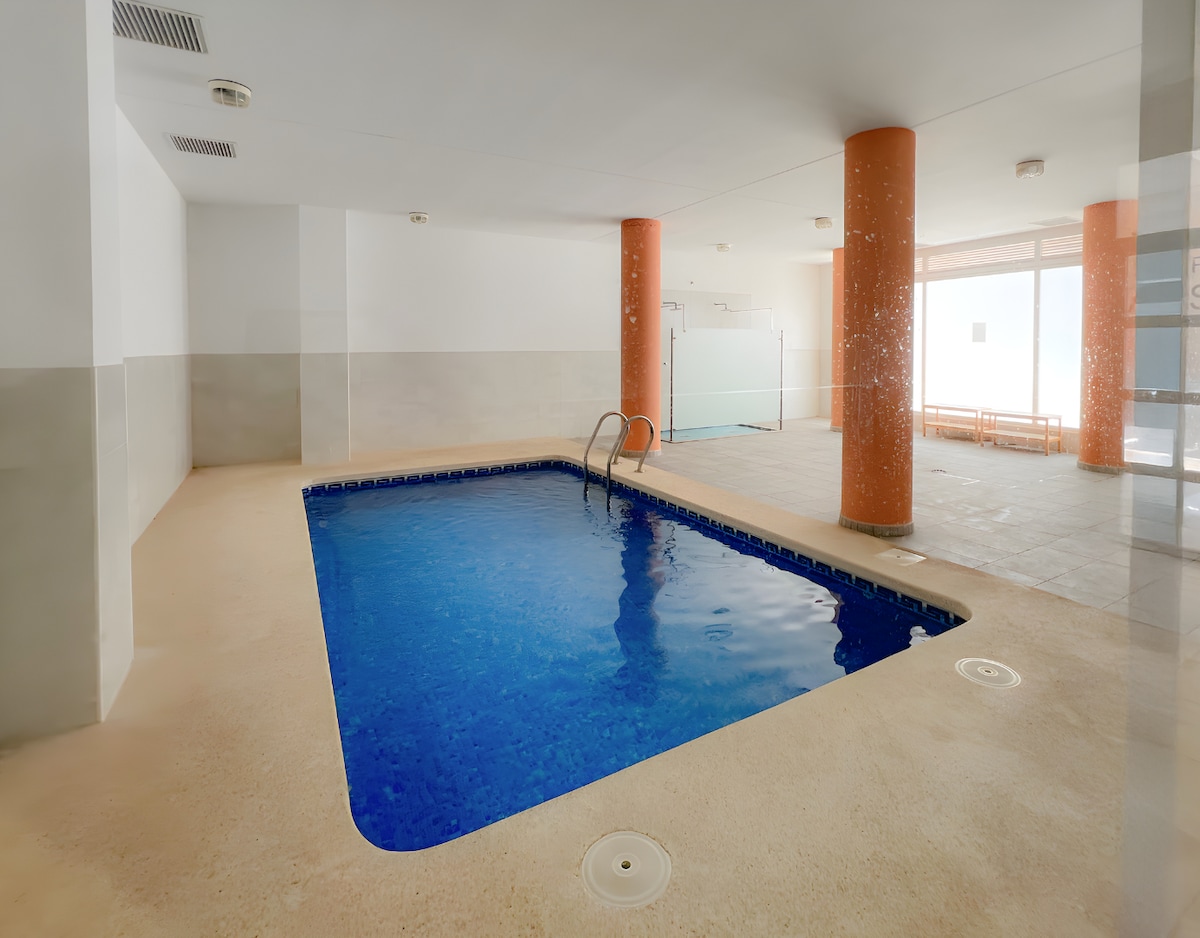 AP-7(3分)とビーチから300mの近くにある、楽しみとリラックスのためのスペースがたくさんあるこの素晴らしい宿泊施設に家族全員を連れて来てください。 アパートは新品同様で、必要な家電がすべて揃っています。ビーチや海の近くの静かで美しい環境でリラックスしてください。建物の庭にはシャワー付きプール、パデルコート、子供用の遊び場があります。建物には6つのエレベーターと広々とした廊下と階段があります。建物の前後に無料駐車スペースがたくさんあります。