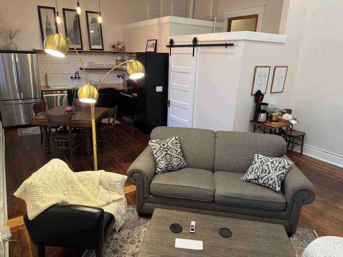 このロフトは、小さな町の賑やかなコーヒーショップの上にあり、町の広場にある公園も見渡せます。 この空間は、古い歴史的な魅力とモダンな都会的な雰囲気が完璧に融合しており、フロントウィンドウからたっぷりと差し込む自然光があります。 キッチンはリビングルームにシームレスにつながり、リビングルームには複数の座席オプションがあります。 寝室とリビングルームにはスマートテレビがありますので、ご自身のストリーミングサイトをご利用いただけます。 スパ風のバスルームには、数多くのアメニティが含まれています。