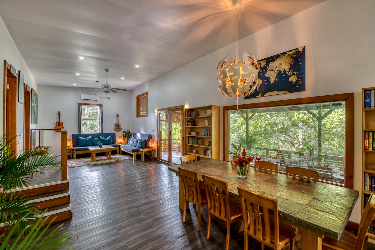 広々とした4ベッドルーム/4バスルーム(エアコン付き) +サーフィン場近くのジャングルの景色