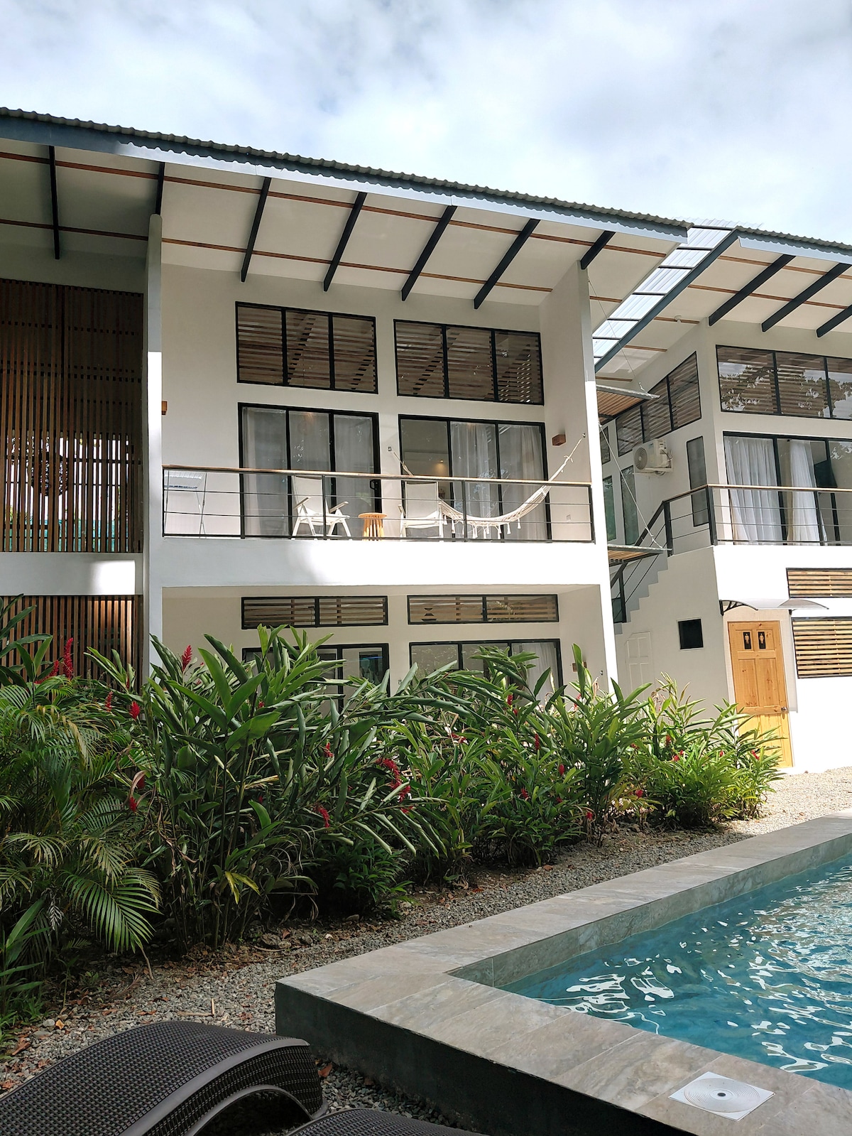 広々とした新しくモダンで快適なユニット 専用玄関があり、各部屋にエアコンがあります。 大きなプール。屋外と屋内にお湯が出るシャワー。フルキッチン。ジャングルを自転車で5分でビーチまで。屋外パティオ。 ジャングルの楽園の真ん中でモダンな設備をお楽しみください。カエルとセミの心地よい不協和音で眠り、目覚めるとオオハシやサルのエネルギーに満ちています。 屋内の温水シャワー、屋外シャワー、ガスコンロ、全ての窓にスクリーン、その他いろいろ。