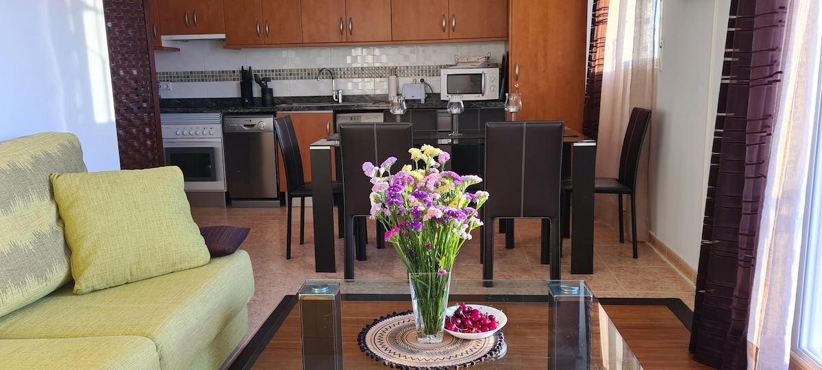 大きなテラスがある中心部にあるアパートです。 立地が良いのでビーチを楽しむのに理想的です(徒歩約3分)。 アイスクリームパーラー、レストラン、バス停がすべて近くにあります。 ベビー用品。長期滞在向けに手頃な料金で貸し出しています(1年のうちの月ごとに特定の料金を設定し、毎月かなりの割引を追加しています)。 良好なWi-Fiサービス、食器洗い機があります。