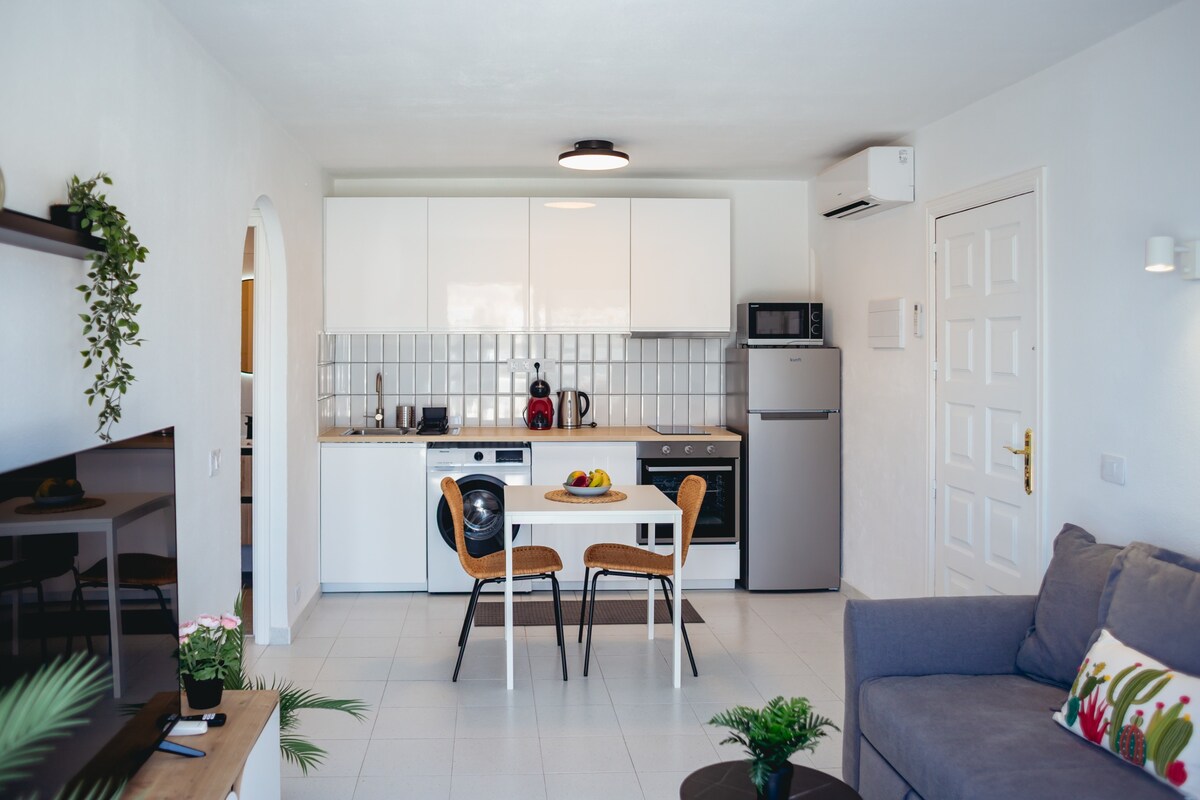 Élvezze a nyugalmat és a csodás kilátást ebben a modern, másfél szobás apartmanban Playa del Cura városában (Monsenor komplexumban). Az ingatlan különlegessége a fűtött medence és a nagyméretű privát terasz, ahonnan lélegzetelállító panoráma nyílik az Atlanti-óceánra .