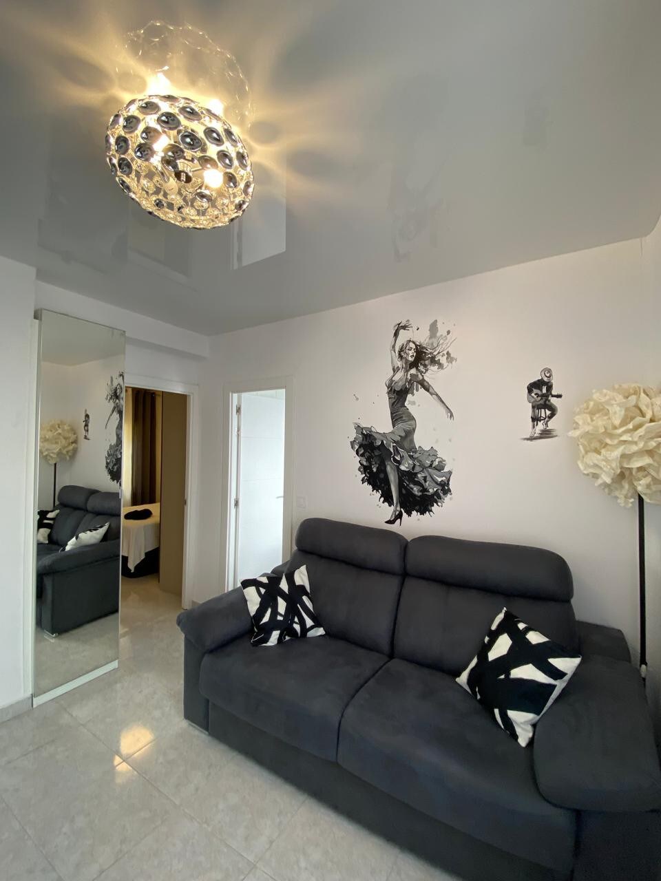 Beautiful located 200 metres from the beach. The flat has 2 bedrooms and 1 bathroom, a large living room with free wi-fi, a terrace, and a fully equipped kitchen. The communal swimming pool, for a fee, guarantees everything you need for an enjoyable day with your family, as it has sun loungers, sunshades. The urbanisation is surrounded by beautiful gardens. Possibility of access to the urbanisation swimming pool (13 euros per person per day, not included in the price of the flat).