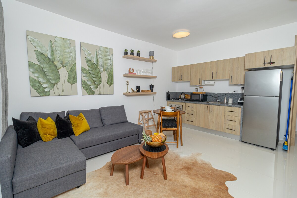 Bienvenido a tu hogar en Bayahibe . Este acogedor apartamento de 1 dormitorio en primer nivel está diseñado para que vivas una experiencia de vacaciones cómoda y relajada. Disfruta del descanso que mereces en una cama king size, de un espacio totalmente equipado para que no te falte nada, y de una amplia terraza privada con vista a la piscina, perfecta para tomar el sol, compartir en pareja o simplemente dejarte llevar por la tranquilidad del lugar.